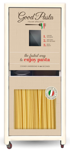 Una macchina automatica che in pochi secondi è in grado di cuocere veri spaghetti made in Italy, cotti al punto giusto, perfettamente conditi in quattro varianti, in grado di conservare quel gusto e quelle qualità nutrizionali che la rendono piatto principe della dieta mediterranea, nonché addirittura patrimonio dell'Unesco.